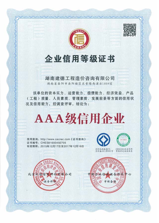 2015年12月17日 我公司榮獲AAA級(jí)信用企業(yè)!